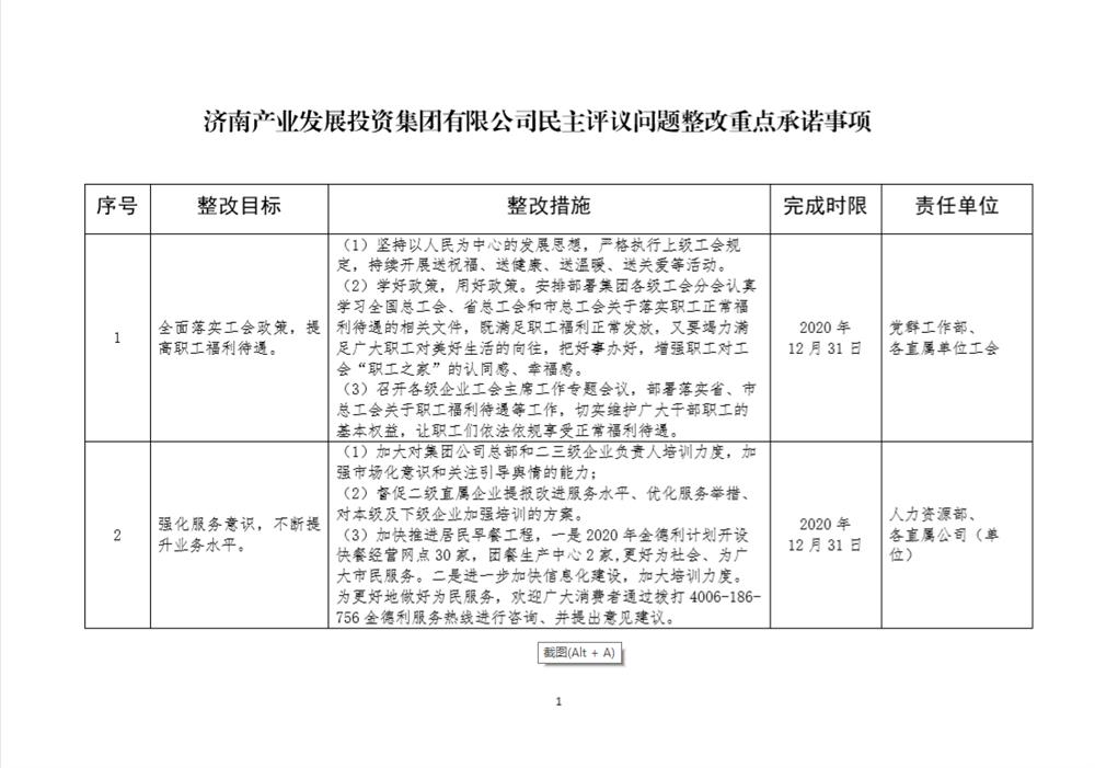 產(chǎn)發(fā)集團民主評議問題整改重點承諾事項
